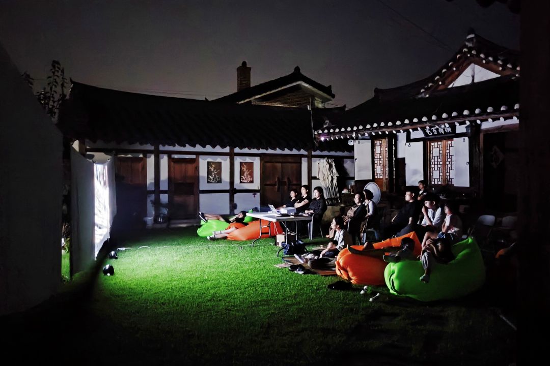 금소마을의 삼베를 테마로 제작해 국내외 영화제에서 한국 전통 삼베의 아름다움을 알리고 있는 작품을 고택의 마당에서 감상합니다.